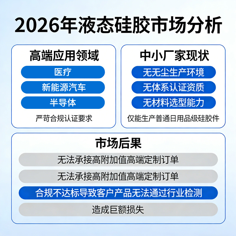 2026 年的液態硅膠行業,正在經歷從 “規模擴張” 到 “質量提升” 的關鍵轉型,低質低價的同質化競爭已經沒有生存空間,只有掌握核心技術、建立標準化管控體系、能滿足高端領域合規要求的企業,才能在行業升級中站穩腳跟。